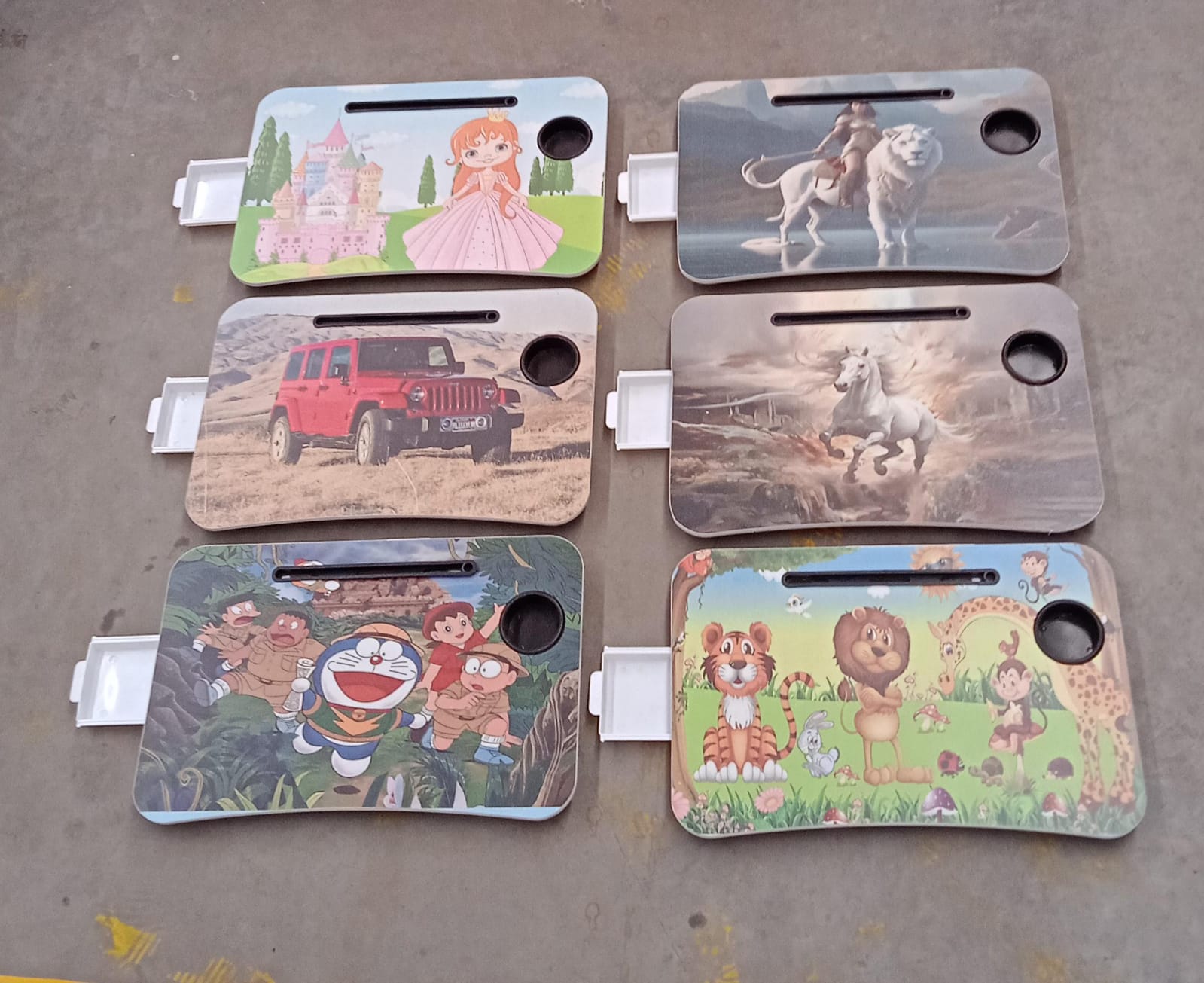 Multi-Purpose Laptop Desk for Study and Reading with Foldable, Cupholder & Drawer (1 Pc / Mix Catoon Design / 58×38 Cm)
